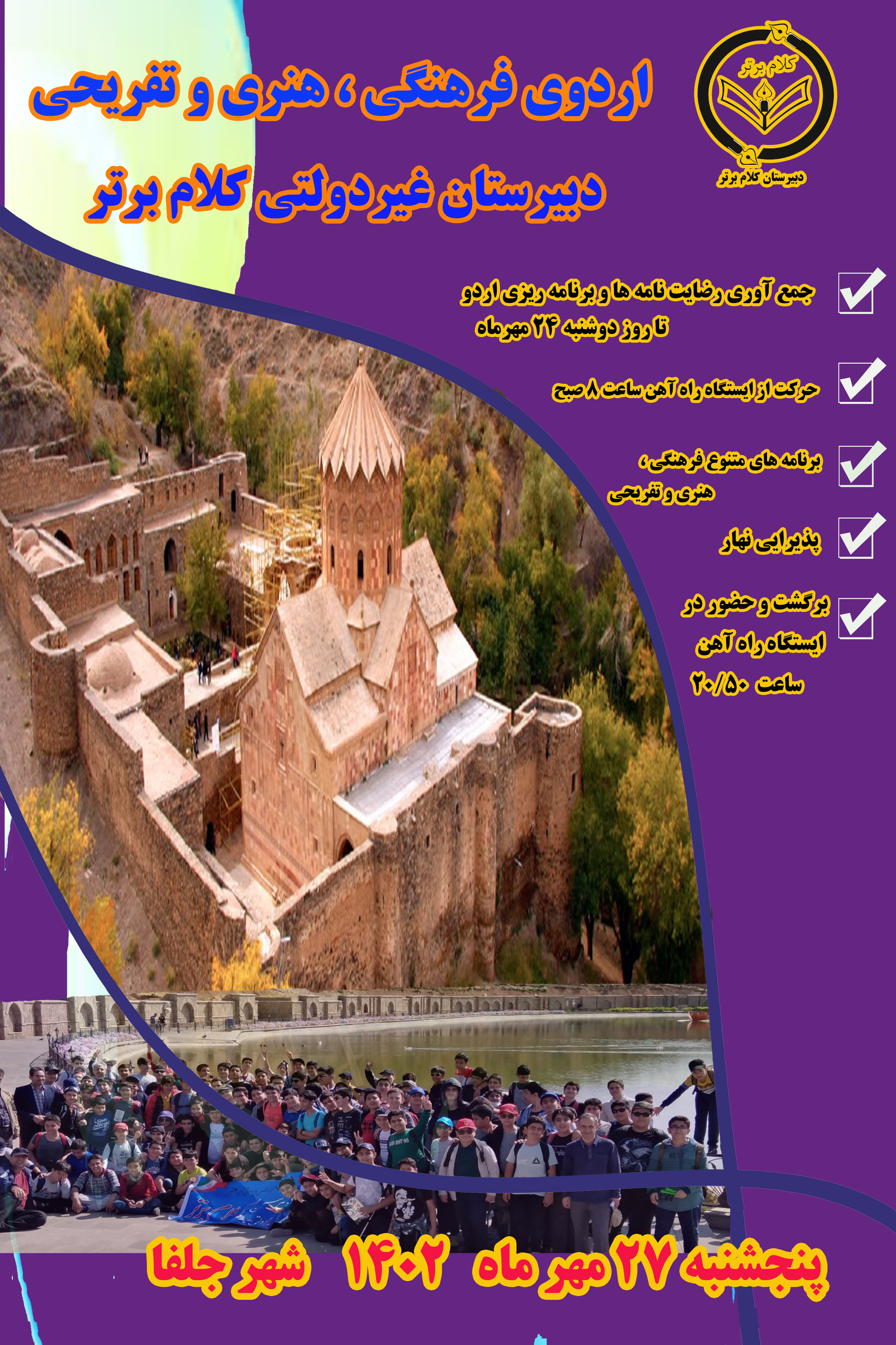 اردوی یکروزه به مقصدجلفا تاریخ ثبت :   1402/08/30